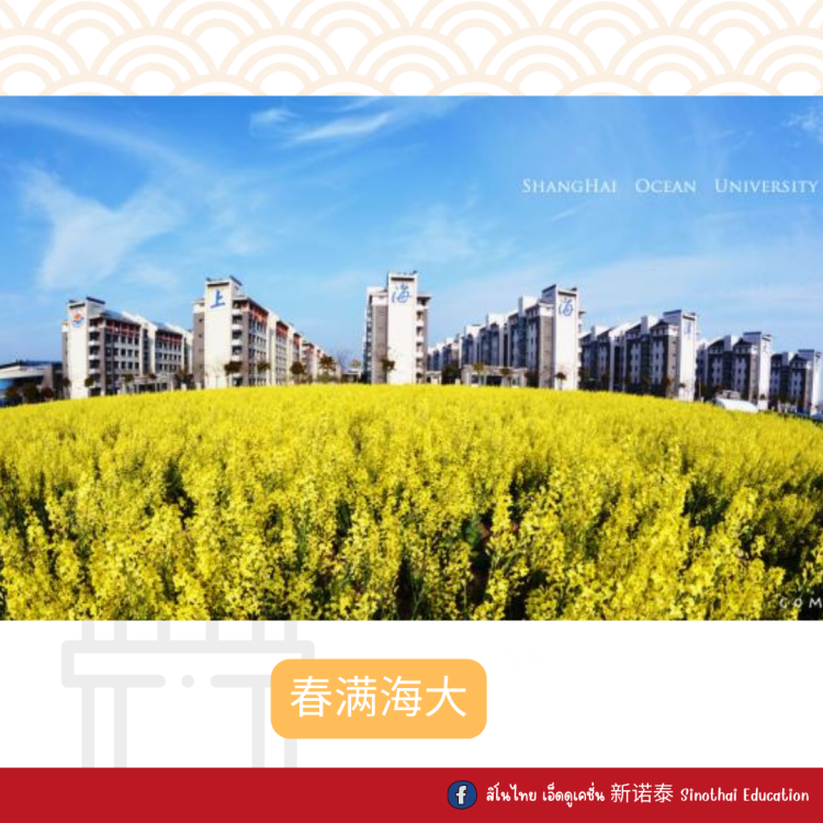 Shanghai Ocean University 上海海洋大学 ก่อตั้งขึ้นเมื่อปี 1914 เป็นมหาวิทยาลัยชื่อเสียงเด่นด้านการขนส่งโลจิสติกส์ การประมงทางทะเล วิทยาศาสตร์การอาหาร และอีกหลากหลายสาขาวิชาที่เปิดสอน เช่น เศรษฐกิจและการค้าระหว่างประเทศ เกษตร วิทยาศาสตร์ เทคโนโลยี เศรษฐศาสตร์ศิลปศาสตร์และการจัดการ  เป็นมหาวิทยาลัยที่จัดตั้งขึ้นโดยความร่วมมือระหว่างเทศบาลนครเซี่ยงไฮ้ สำนักงานมหาสมุทรแห่งสาธารณรัฐประชาชนจีน (State Oceanic Administration: SOA) และกระทรวงเกษตรและกิจการชนบท อีกทั้งมหาวิทยาลัย ยังได้คัดเลือกเป็น Double First Class “ มหาวิทยาลัยชั้นนำของโลก ” และ “ มหาวิทยาลัยที่มีสาขาวิชาระดับโลก ”
